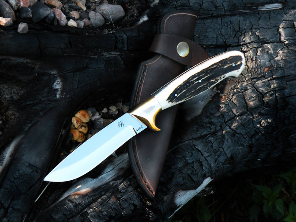 A vadászkések nyéle minőségi valódi szarvasagancsból, vagy trópusi keményfából készül igény szerint.