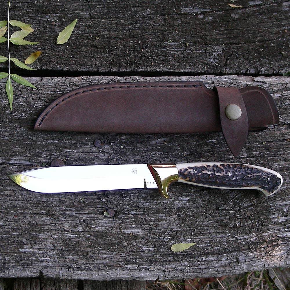 A vadászkések nyéle minőségi valódi szarvasagancsból, vagy trópusi keményfából készül igény szerint.