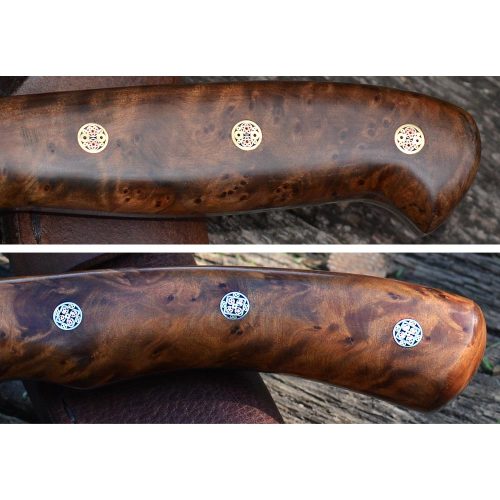 Marokkói gyöngyöző tuja különböző vadászkés nyél formákon: