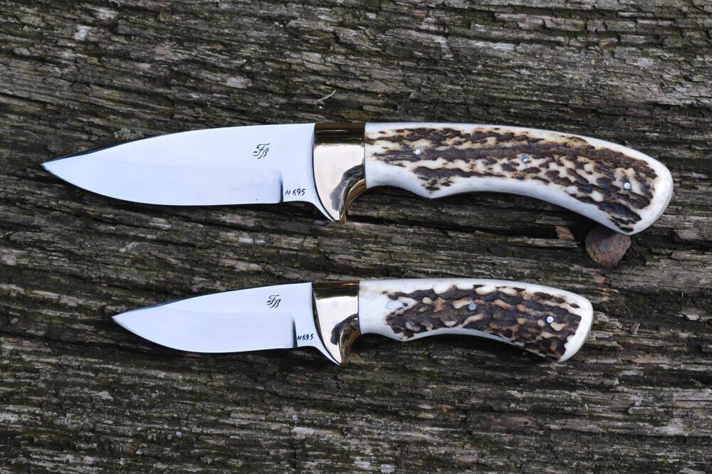A vadászkések nyéle minőségi valódi szarvasagancsból, vagy trópusi keményfából készül igény szerint.