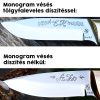 Kérhető tetszőleges monogram, vagy szám bevésése az előke részbe. A monogram a vezeték és keresztnevek első kezdőbetűi. (Például Kovács József monogramja K.J.)